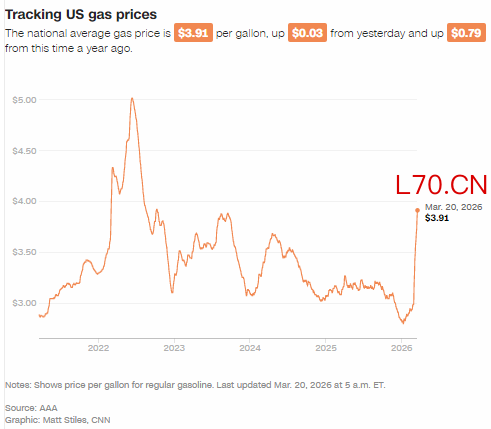 然而,这笔额外收入到来之际,许多人正承受着加油站的更大压力。全美汽油均价已飙升至 3.91 美元,自 2 月 28 日美以对伊朗开战以来,每加仑上涨了 93 美分。