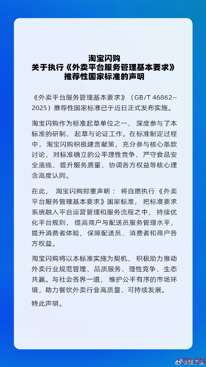 淘宝闪购回应《外卖平台服务管理基本要求》