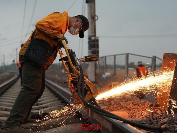 国铁太原局侯马北工务段青年职工化身铁道线上的“精修师”,以钢轨打磨作业为抓手,筑牢行车安全屏障。张晓皞/摄