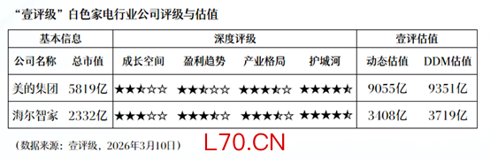 元股证券:ygzq.hk综上所述,“壹评级”认为,白色家电板块当前处于低估值、高股息状态,中长期仍具备配置价值,建议重点关注板块龙头美的集团和海尔智家。根据美的集团业绩指引,在去年一季度高基数下,公司预计2026年一季度收入、利润均表现平稳;海尔智家虽短期业绩承压显著,但全球竞争力优势稳固,高端化、全球化、经营提效的核心投资逻辑未变。