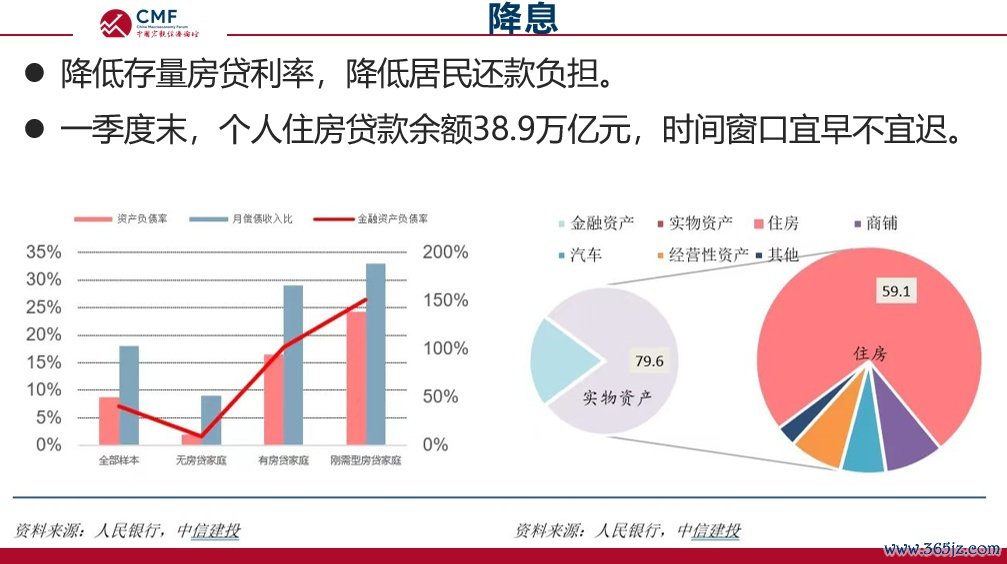 从居民端看,目前存贷住房余额压力比较大。一季度末,个人住房贷款余额为38.9万亿元。居民资产负债表中,60%的负债集中于房贷,因此进一步下调存量房贷利率将有助于缓解居民还款压力。