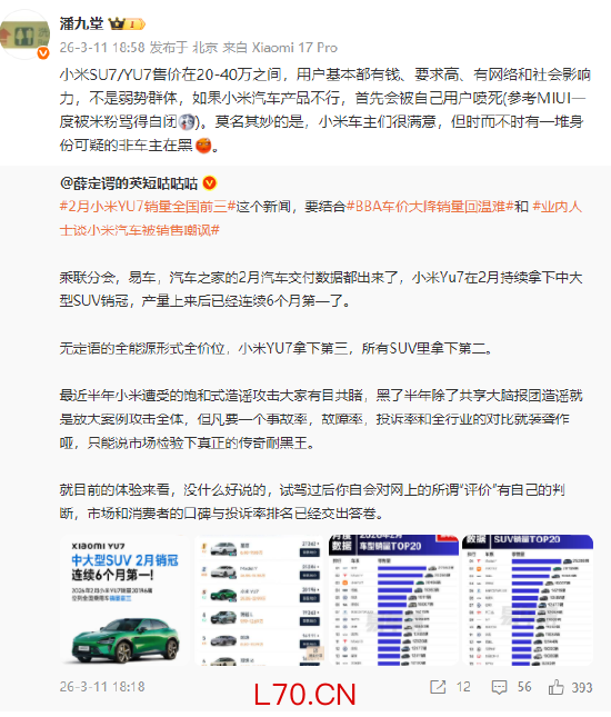 小米潘九堂:小米车主基本都有钱要求高、对产品很满意,但有一堆身份可疑的非车主在黑