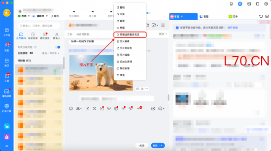 具体操作上,商家端可直接在千牛旺旺聊天中右击图片,选择“反馈虚假售后凭证”,选择对应订单和场景,一键提交,AI 假图判定成立后将直接影响判决结果,并向商家预警。